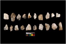 | Description / विवरण | Specimen of flakes tool with prominent flaking marks. Some are pointed and tapering at one end. |