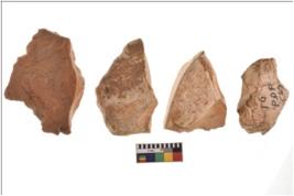 | Description / विवरण | Four worked flakes with sharp edges. Some of them are tapering at one end. |