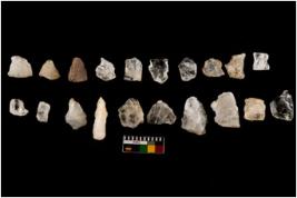 | Description / विवरण | Specimen of flakes tool with prominent flaking marks. Some are pointed and tapering at one end. |