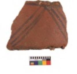 | Description / विवरण | Specimen of black on red ware with decorative geometric Linear Pattern painting. |