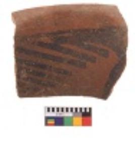 | Description / विवरण | Specimen of black on red ware with decorative geometric Linear Pattern painting. |