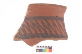 | Description / विवरण | Specimen of a potsherd with black decorative geometric painting. |