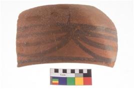 | Description / विवरण | Specimen of a potsherd with black decorative geometric painting. |