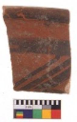 | Description / विवरण | Specimen of black on red ware with decorative geometric Linear Pattern painting. |