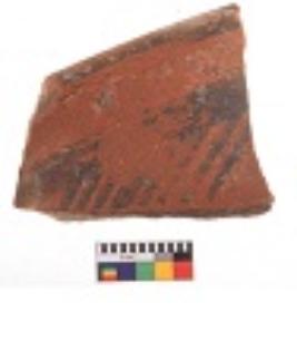 | Description / विवरण | Specimen of black on red ware with decorative geometric Linear Pattern painting. |