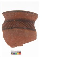 | Description / विवरण | Specimen of a potsherd with black decorative geometric painting. |
