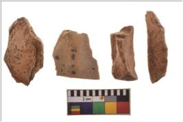 | Description / विवरण | Four worked flakes with sharp edges. Some of them are tapering at one end. |