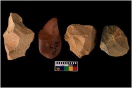 | Description / विवरण | Four worked flakes with sharp edges. Some of them are tapering at one end. |