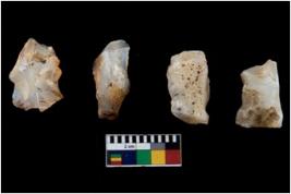 | Description / विवरण | There are n-4 of intact cores made up of Chalcedony.There are multidirectional irregular dominant scar pattern on both dorsal and ventral face of the cores. |