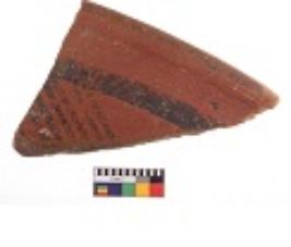 | Description / विवरण | Specimen of black on red ware with decorative geometric Linear Pattern painting. |