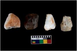 | Description / विवरण | There are n-4 of intact cores made up of Chalcedony.There are multidirectional irregular dominant scar pattern on both dorsal and ventral face of the cores. |