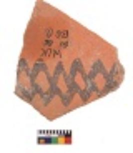 | Description / विवरण | Specimen of black on red ware with decorative geometric zigzag Pattern painting. |