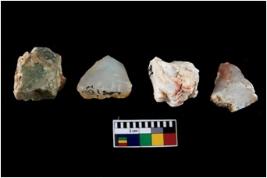 | Description / विवरण | There are n-4 of intact cores. Out of them 3 are made up Chalcedony and 1 is made up of Chert.There are multidirectional irregular dominant scar pattern on both dorsal and ventral face of the cores. |