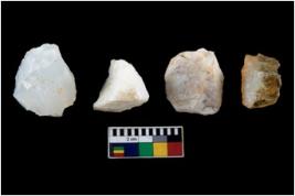 | Description / विवरण | There are n-4 of intact cores. Out of them 2 are made up Chalcedony, 1 is made up of Agate and 1 is made up of Chert.There are multidirectional irregular dominant scar pattern on both dorsal and ventral face of the cores. |