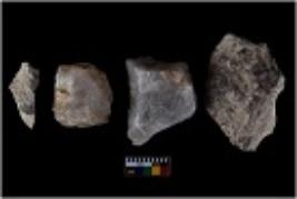 | Description / विवरण | Specimen of fluted cores having several broad fluted marks indicating the detached blades from it. |