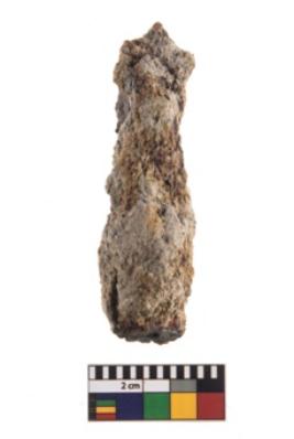 | Description / विवरण | A partially broken specimen of a nail which is headless with a tapering squarish body. It is heavily rusted. |