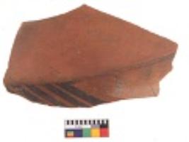 | Description / विवरण | Specimen of black on red ware with decorative black pigment. |