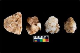 | Description / विवरण | There are n-4 of intact cores. Out of them 1 is made up Chalcedony and 3 are made up of Chert.There are multi directional irregular dominant scar pattern on both dorsal and ventral face of the cores. |