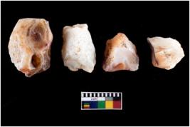 | Description / विवरण | There are n-4 of intact cores. Out of them 1 is made up Chalcedony and 3 are made up of Chert.There are multi directional irregular dominant scar pattern on both dorsal and ventral face of the cores. |