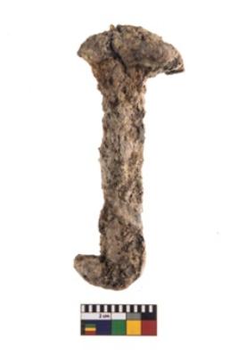 | Description / विवरण | A complete specimen of a square headed nail with a hook shaped end.It is having rectangular shaped body with rectangular section. It is heavily rusted. |