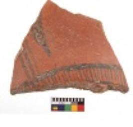 | Description / विवरण | Specimen of black on red ware with decorative geometric painting. |