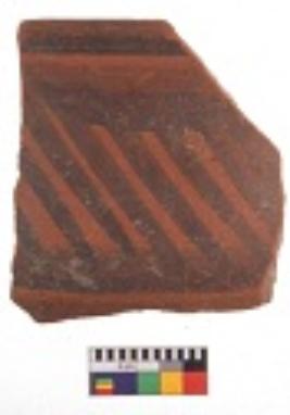 | Description / विवरण | Specimen of black on red ware with decorative geometric Linear Pattern painting. |
