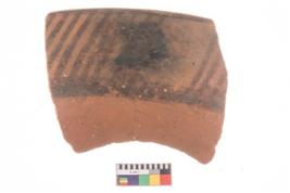 | Description / विवरण | Specimen of a potsherd with black decorative geometric painting. |