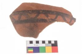 | Description / विवरण | Specimen of a potsherd with black decorative geometric painting. |