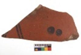 | Description / विवरण | Specimen of black on red ware with decorative geometric Linear Pattern painting. |