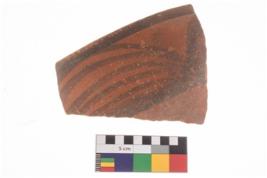 | Description / विवरण | Specimen of a potsherd with black decorative geometric painting. |