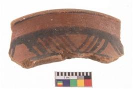 | Description / विवरण | Specimen of a potsherd with black decorative geometric painting. |