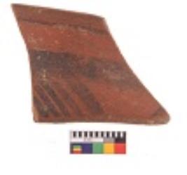 | Description / विवरण | Specimen of black on red ware with decorative geometric Linear Pattern painting. |