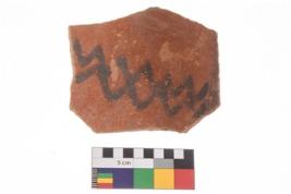 | Description / विवरण | Specimen of a potsherd with black decorative geometric painting. |