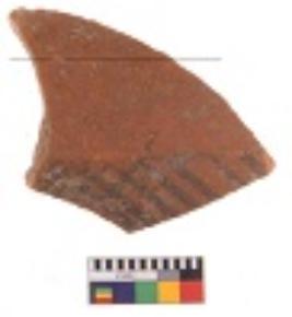 | Description / विवरण | Specimen of black on red ware with decorative black pigment. |