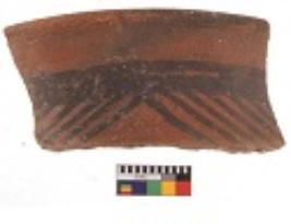 | Description / विवरण | Specimen of black on red ware with decorative geometric Linear Pattern painting. |
