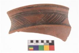 | Description / विवरण | Specimen of a potsherd with black decorative geometric painting. |