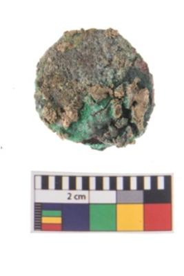 | Description / विवरण | A heavily corroded circular coin, it is damaged at the periphery. |