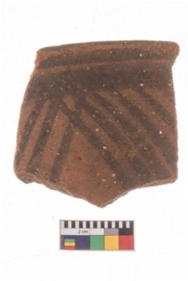 | Description / विवरण | Specimen of a potsherd with black decorative geometric painting. |