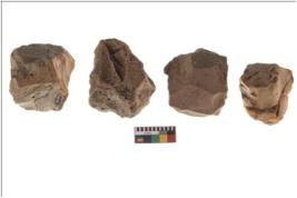 | Description / विवरण | Four worked cores; they show impressions of removal of flakes. |