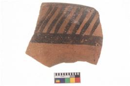 | Description / विवरण | Specimen of a potsherd with black decorative geometric painting. |