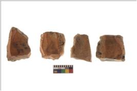 | Description / विवरण | Four worked cores; they show impressions of removal of flakes. |