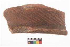 | Description / विवरण | Specimen of a potsherd with black decorative geometric painting. |