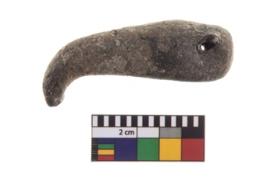 | Description / विवरण | A partially broken specimen of a Terracotta Pendant. It is made of red ware, fine fabric, well-fired. It is cylindrical in shape with tapering upwards. The hole for suspension is provided near the top. |