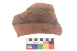 | Description / विवरण | A Specimen of a potsherd with black decorative geometric painting on it. It have group of oblique lines set two horizontal bands. |