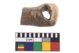 | Description / विवरण | A partially broken specimen of a Terracotta Pendant. It is made of red ware, fine fabric, well-fired. It is cylindrical in shape with tapering upwards. The hole for suspension is provided near the top. |