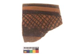 | Description / विवरण | Specimen of a potsherd with black decorative geometric painting. |