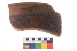 | Description / विवरण | Specimen of a potsherd with black decorative geometric painting. |