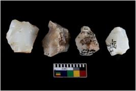 | Description / विवरण | There are n-4 of intact cores made up of Chalcedony.There are multidirectional irregular dominant scar pattern on both dorsal and ventral face of the cores. |