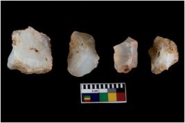 | Description / विवरण | There are n-4 of intact cores made up of Chalcedony.There are multidirectional irregular dominant scar pattern on both dorsal and ventral face of the cores. |