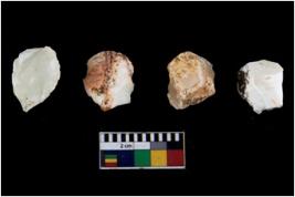 | Description / विवरण | There are n-4 of intact cores. Out of them 3 are made up Chalcedony and 1 is made up of Chert.There are multidirectional irregular dominant scar pattern on both dorsal and ventral face of the cores. |